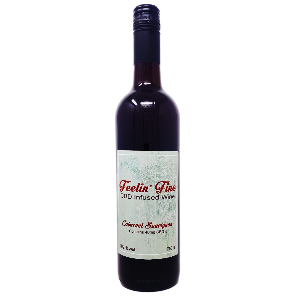 Raise your spirits with our CBD infused “Feelin’ Fine Wine,” a uniquely crafted blend of Cabernet Sauvignon that combines the artistry of winemaking with the wellness benefits of CBD.